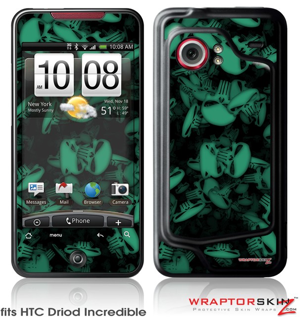 HTC Droid Incredible Skin - Skulls Confetti Seafoam Green