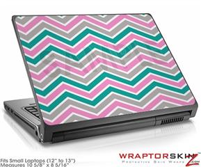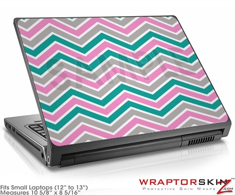 Small Laptop Skin Zig Zag Teal Pink and Gray