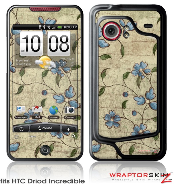 HTC Droid Incredible Skin Flowers and Berries Blue