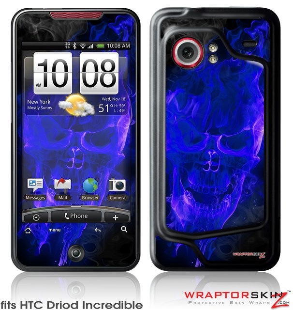 HTC Droid Incredible Skin Flaming Fire Skull Blue