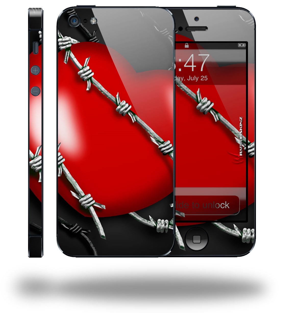 Barbwire Heart Red - Decal Style Vinyl Skin (compatible with Apple Original iPhone 5, NOT the iPhone 5C or 5S)