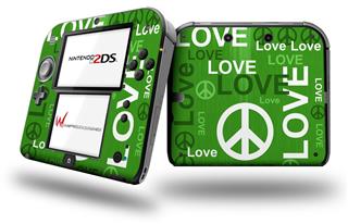 Love and Peace Green - Decal Style Vinyl Skin fits Nintendo 2DS - 2DS NOT INCLUDED
