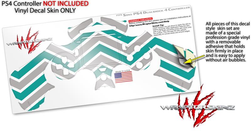 WraptorSkinz Skin compatible with Sony PS4 Dualshock Controller PlayStation 4 Original Slim and Pro Zig Zag Teal and Gray (CONTROLLER NOT INCLUDED)