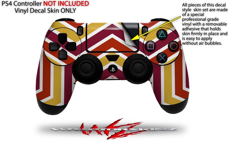 WraptorSkinz Skin compatible with Sony PS4 Dualshock Controller PlayStation 4 Original Slim and Pro Zig Zag Yellow Burgundy Orange (CONTROLLER NOT INCLUDED)