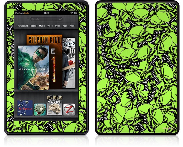 Amazon Kindle Fire (Original) Decal Style Skin - Scattered Skulls Neon Green