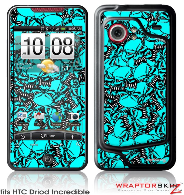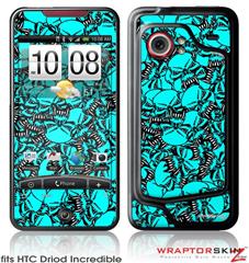 HTC Droid Incredible Skin Scattered Skulls Neon Teal