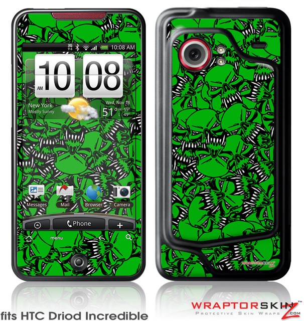HTC Droid Incredible Skin Scattered Skulls Green