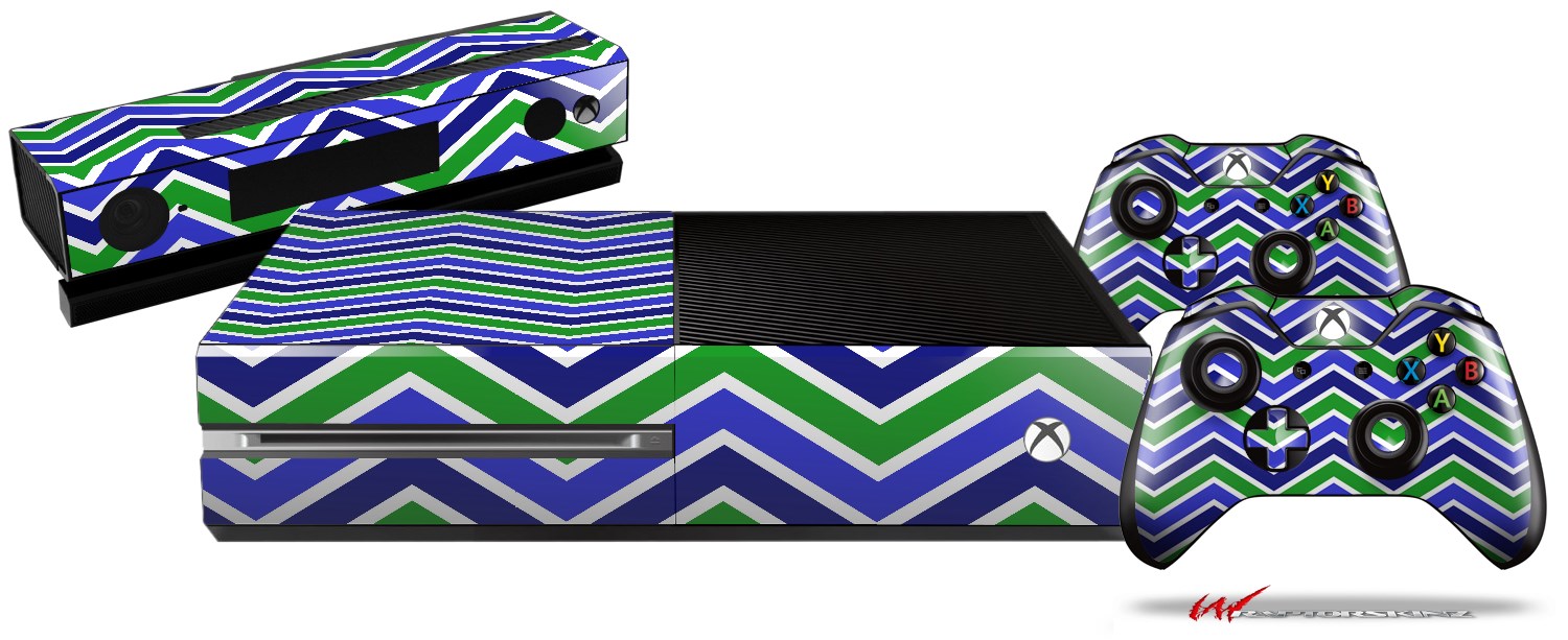 Zig Zag Blue Green - Holiday Bundle Decal Style Skin fits XBOX One Console Original, Kinect and 2 Controllers (XBOX SYSTEM NOT INCLUDED)