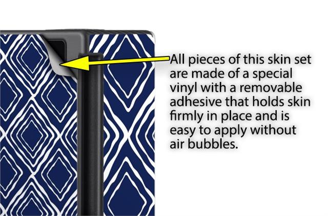WraptorSkinz® skins are superb photo quality designs and vibrant colors printed with special Eco-Friendly, fade resistant inks. Our skins are self-adhering flexible vinyl skins that helps prevent scratches. Made of composite, multi-layered commercial grade materials. The bottom layer is made with a special removable adhesive that is easily positioned and applied without air bubbles. We print your design on the bottom layer then bond a professional grade laminate over the entire skin adding a glossy protective finish.
