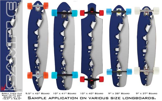 Our longboard skins are made so that one size fits boards up to 10” wide x 42” long. This means after applying the skin it you will trimming to fit you’re the shape of your board with a sharp utility knife.