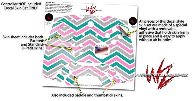 Zig Zag Teal Pink and Gray - Decal Style Skin fits Microsoft XBOX One ELITE Wireless Controller (CONTROLLER NOT INCLUDED)