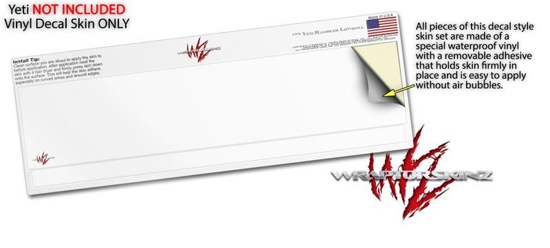 WraptorSkinz® skin wraps for Yeti Lowball cup are printed using superb photo quality designs and vibrant colors printed with special fade resistant inks that last even in direct sun for years. WraptorSkinz® are a composite of two layers of commercial grade materials. The bottom layer is a soft, flexible vinyl with a special removable adhesive that is easily positioned, applied without air bubbles. Next we print the bottom layer with UV protected, fade resistant inks that deliver superb photo quality designs in vibrant colors. Finally we bond a professional grade laminate over the entire skin adding a glossy protective finish.