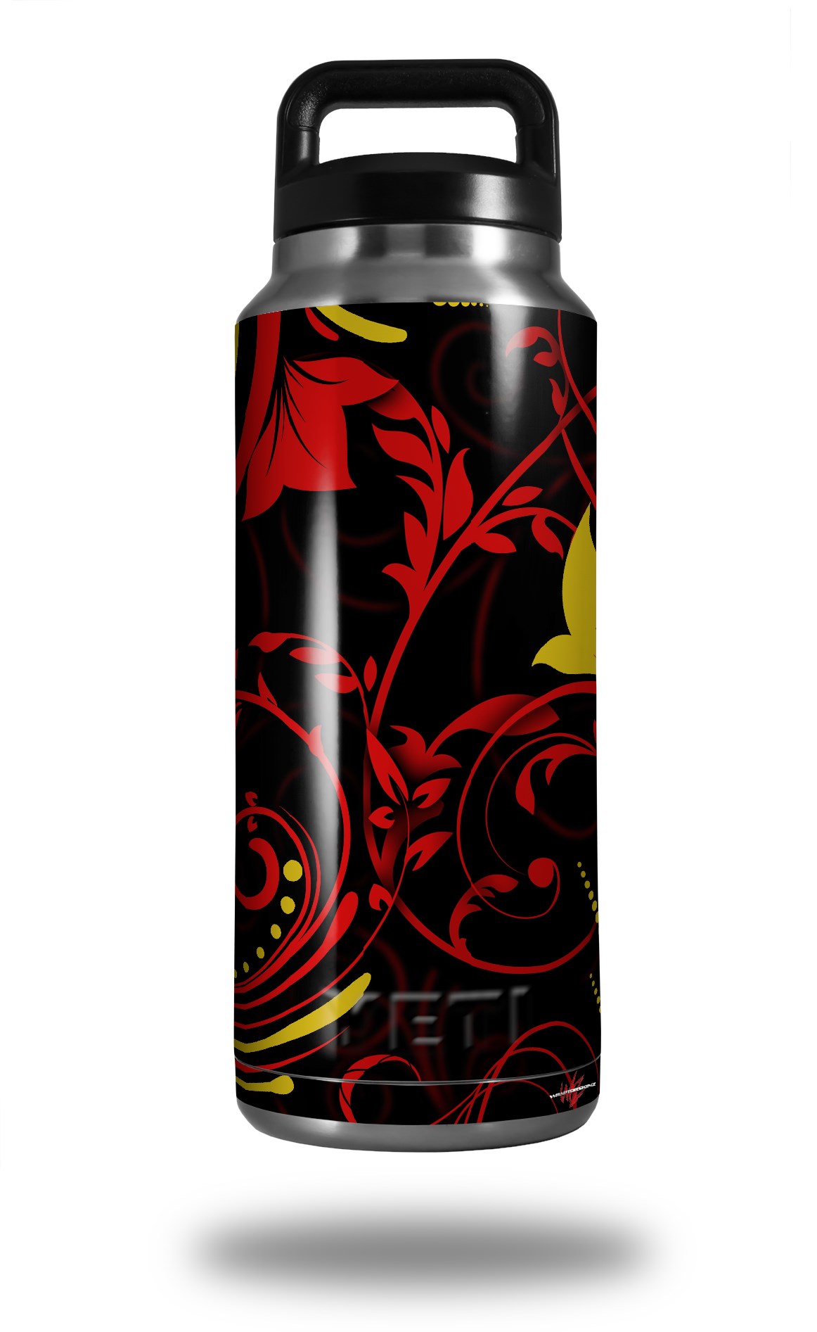 Skin Decal Wrap for Yeti Rambler Bottle 36oz Twisted Garden Red and Yellow (YETI NOT INCLUDED)