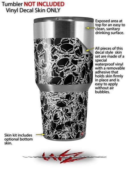 WraptorSkinz Skin Wrap compatible with RTIC 30oz ORIGINAL 2017 AND OLDER Tumblers Scattered Skulls Black (TUMBLER NOT INCLUDED)
