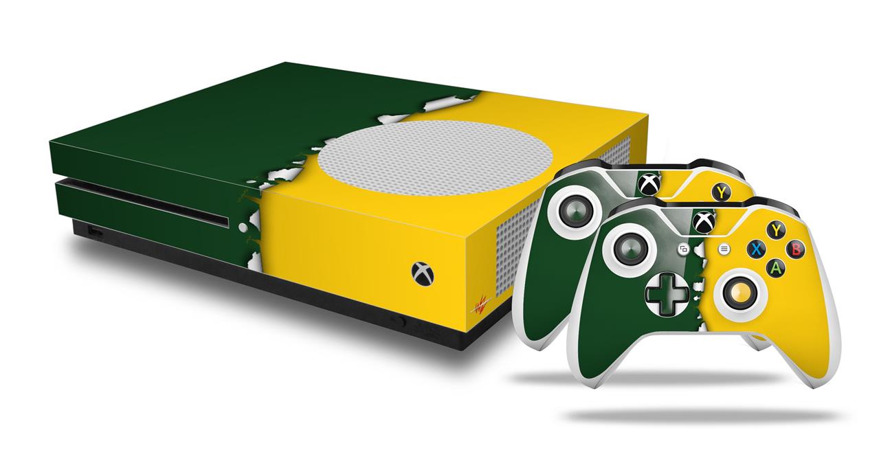 WraptorSkinz Decal Skin Wrap Set works with 2016 and newer XBOX One S Console and 2 Controllers Ripped Colors Green Yellow