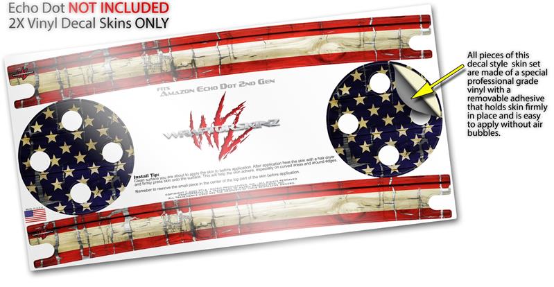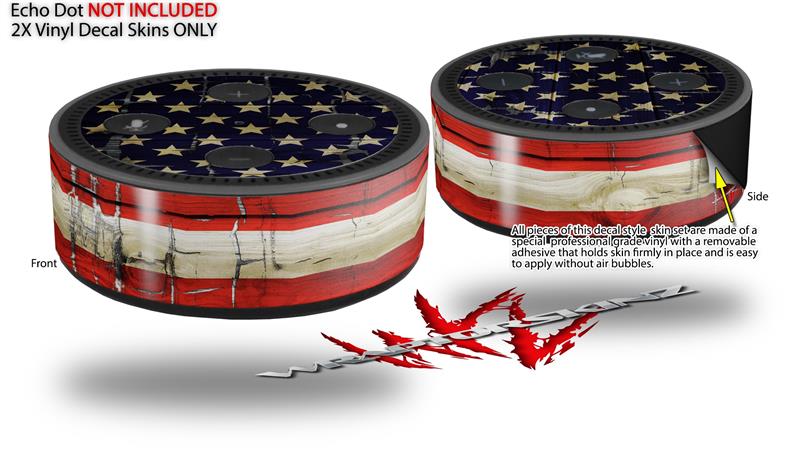 Skin Wrap Decal Set 2 Pack for Amazon Echo Dot 2 - Painted Faded and Cracked USA American Flag (2nd Generation ONLY - Echo NOT INCLUDED)