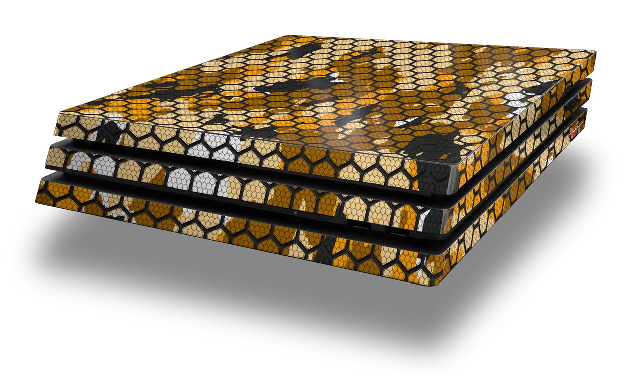 Vinyl Decal Skin Wrap compatible with Sony PlayStation 4 Pro Console HEX Mesh Camo 01 Orange (PS4 NOT INCLUDED)