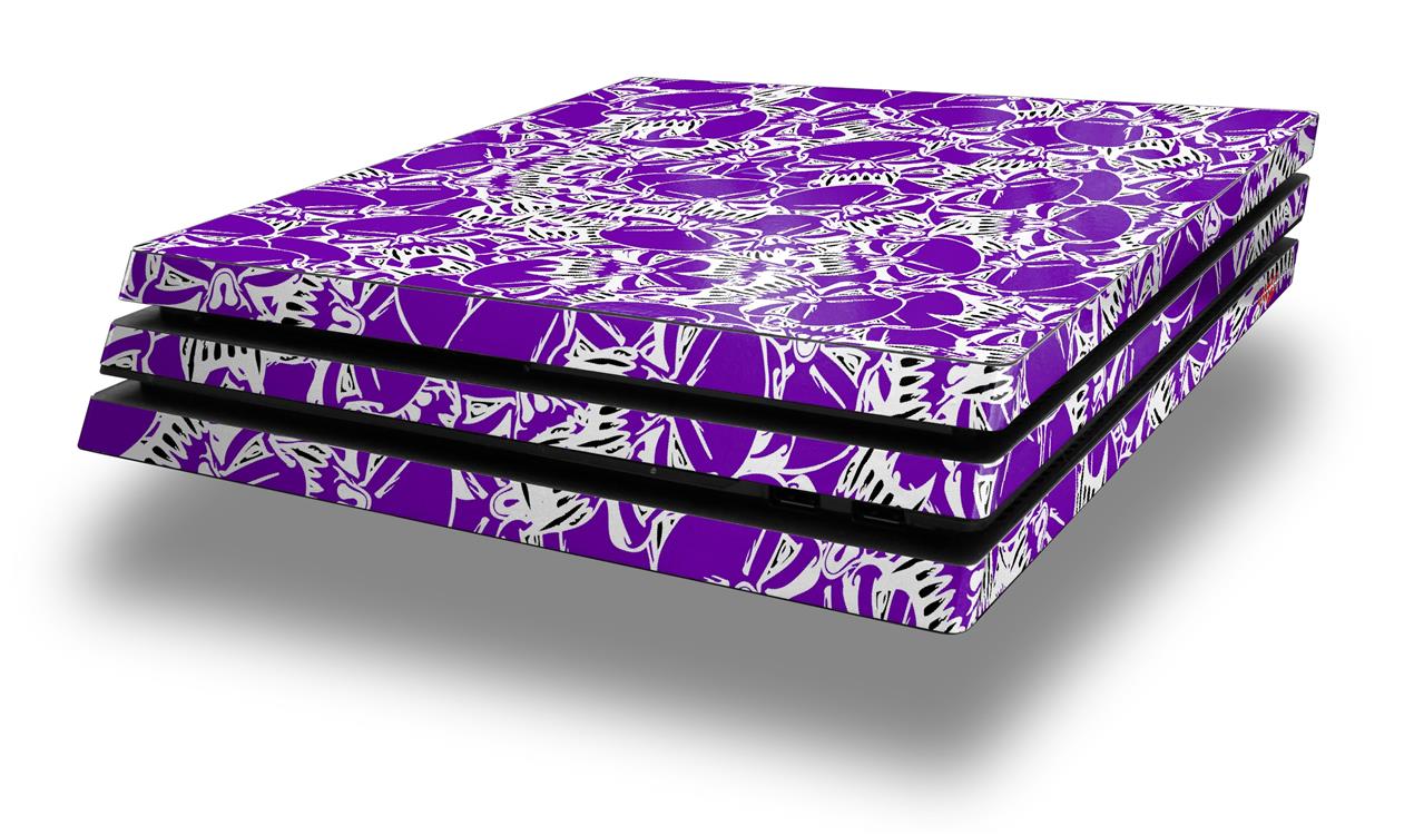 Vinyl Decal Skin Wrap compatible with Sony PlayStation 4 Pro Console Scattered Skulls Purple (PS4 NOT INCLUDED)