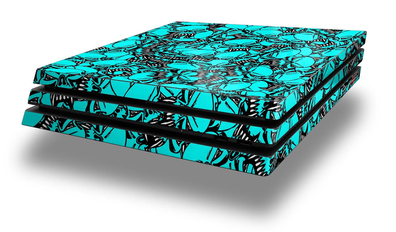 Vinyl Decal Skin Wrap compatible with Sony PlayStation 4 Pro Console Scattered Skulls Neon Teal (PS4 NOT INCLUDED)