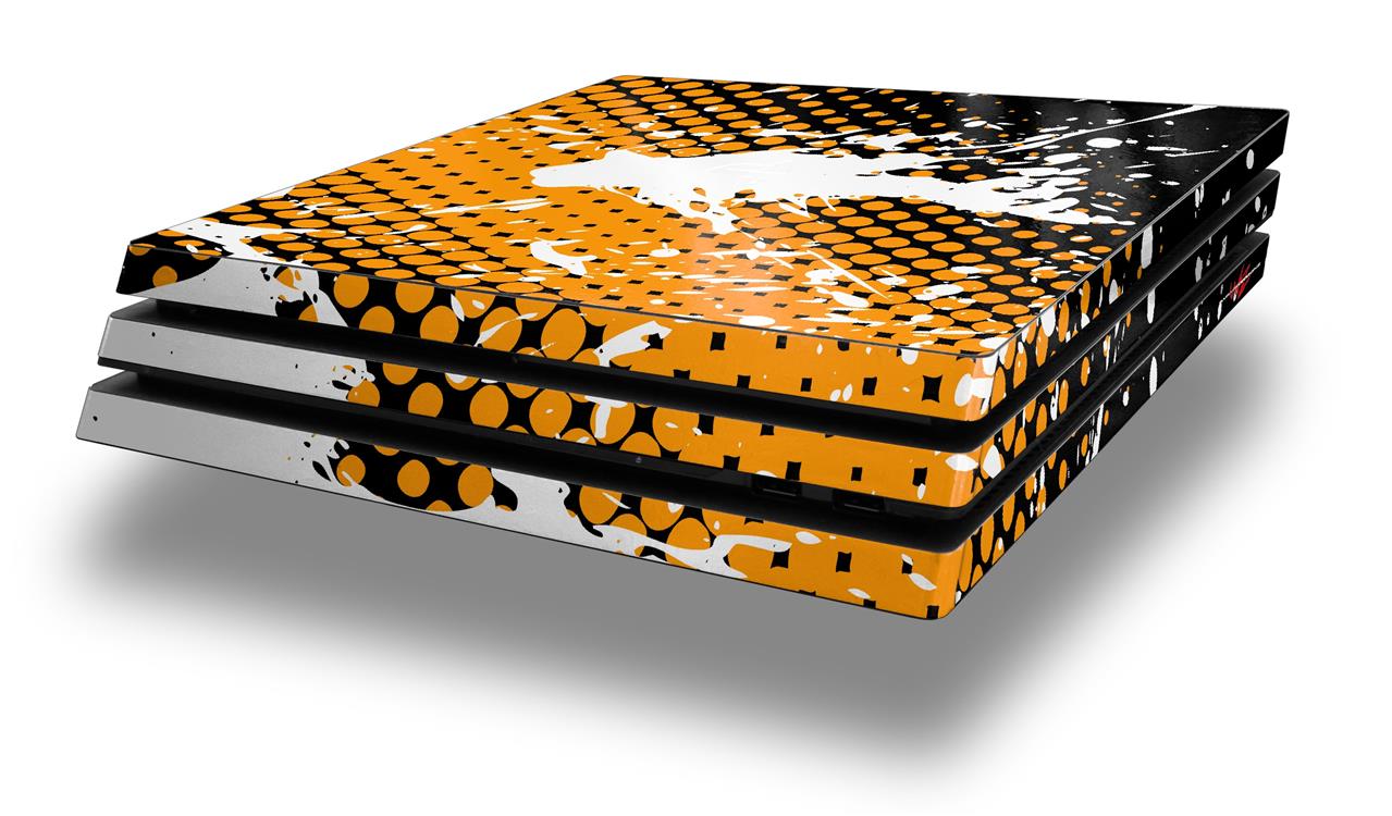 Vinyl Decal Skin Wrap compatible with Sony PlayStation 4 Pro Console Halftone Splatter White Orange (PS4 NOT INCLUDED)
