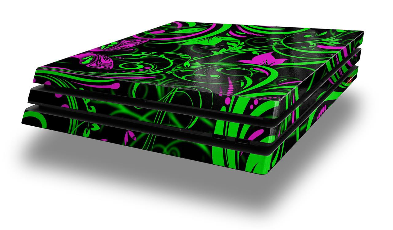 Vinyl Decal Skin Wrap compatible with Sony PlayStation 4 Pro Console Twisted Garden Green and Hot Pink (PS4 NOT INCLUDED)