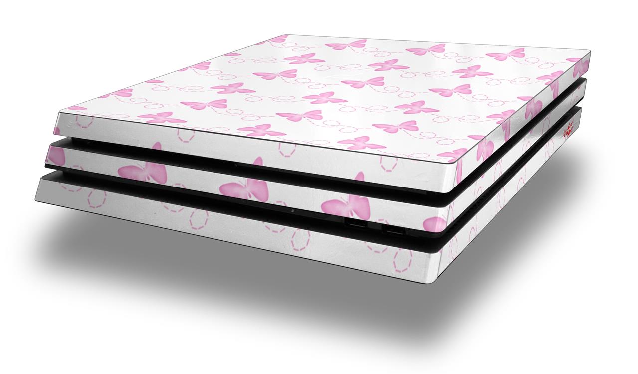 Vinyl Decal Skin Wrap compatible with Sony PlayStation 4 Pro Console Pastel Butterflies Pink on White (PS4 NOT INCLUDED)