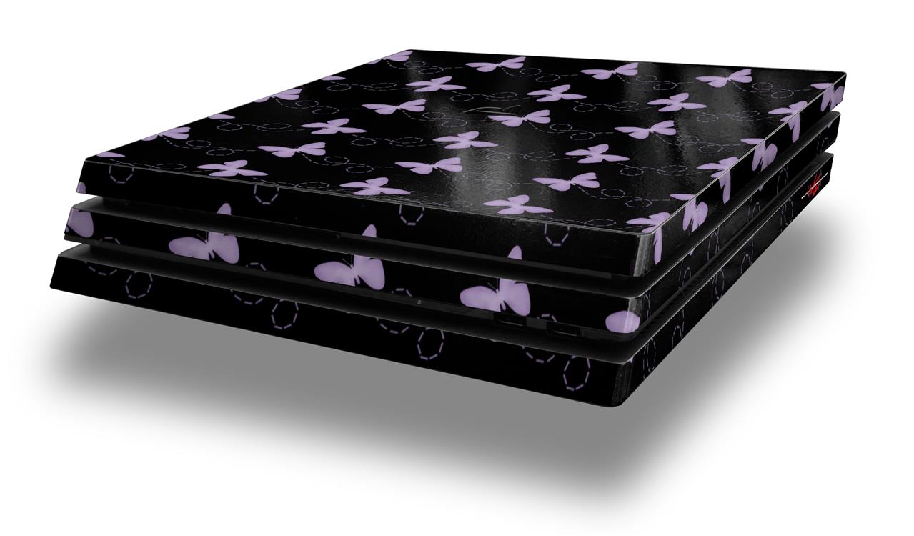 Vinyl Decal Skin Wrap compatible with Sony PlayStation 4 Pro Console Pastel Butterflies Purple on Black (PS4 NOT INCLUDED)
