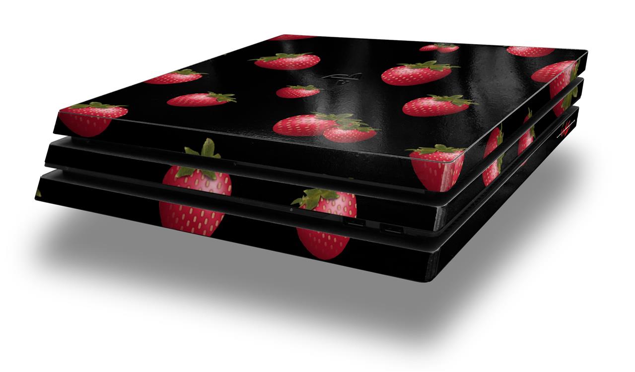 Vinyl Decal Skin Wrap compatible with Sony PlayStation 4 Pro Console Strawberries on Black (PS4 NOT INCLUDED)