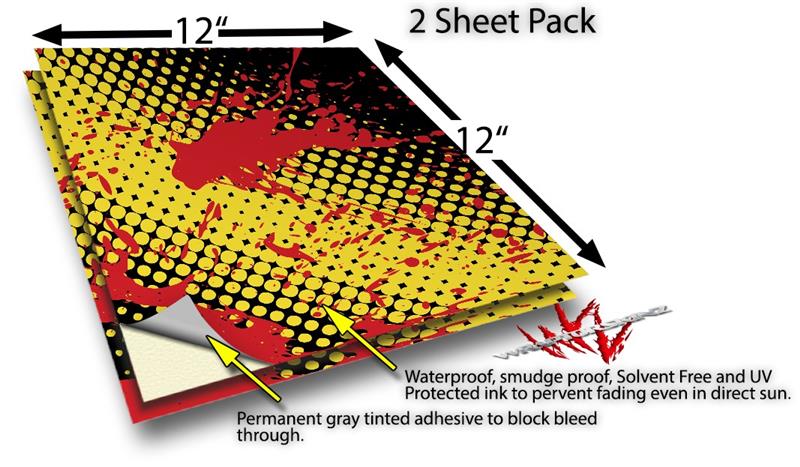 WraptorSkinz® skin vinyl craft sheets are printed using superb photo quality designs and vibrant colors printed with special UV Protected fade resistant inks that last even in direct sun for years. Unlike other brands our inks are NOT solvent based. WraptorSkinz® are a manufactured from professional grade 3mill vinyl. These sheets are waterproof, the designs will not run or smear even if submerged in water.