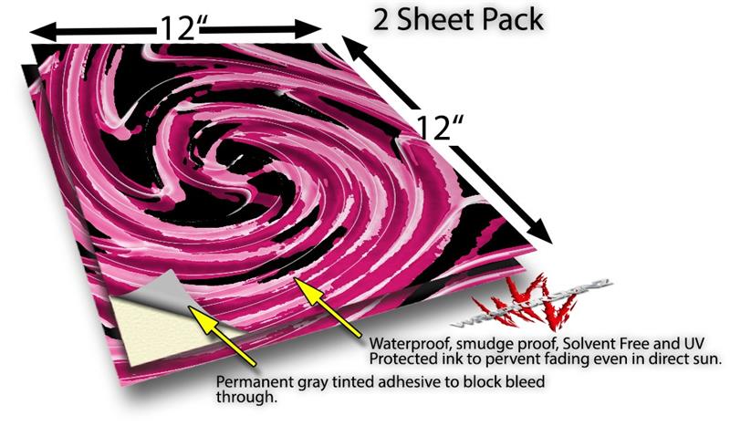 WraptorSkinz® skin vinyl craft sheets are printed using superb photo quality designs and vibrant colors printed with special UV Protected fade resistant inks that last even in direct sun for years. Unlike other brands our inks are NOT solvent based. WraptorSkinz® are a manufactured from professional grade 3mill vinyl. These sheets are waterproof, the designs will not run or smear even if submerged in water.