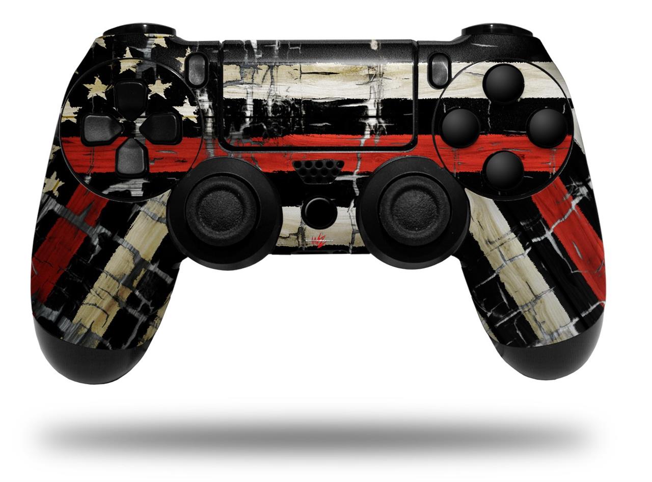 WraptorSkinz Skin compatible with Sony PS4 Dualshock Controller PlayStation 4 Original Slim and Pro Painted Faded and Cracked Red Line USA American Flag (CONTROLLER NOT INCLUDED)