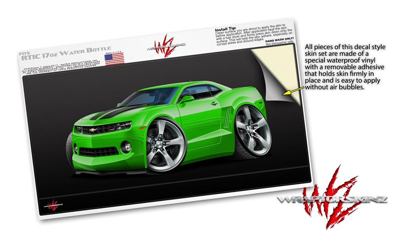 Skin Decal Wrap for RTIC Water Bottle 17oz 2010 Camaro RS Green (BOTTLE NOT INCLUDED)