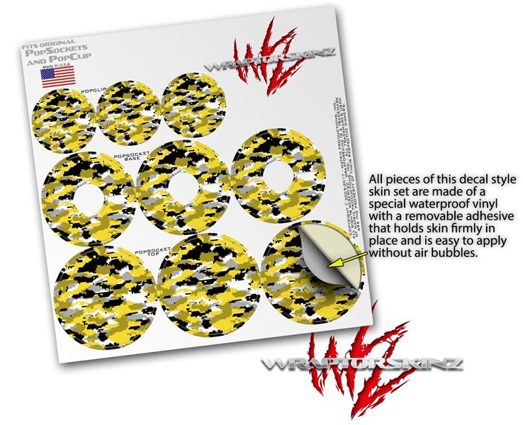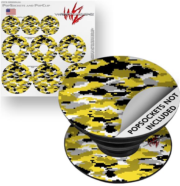 Decal Style Vinyl Skin Wrap 3 Pack for PopSockets WraptorCamo Digital Camo Yellow (POPSOCKET NOT INCLUDED)