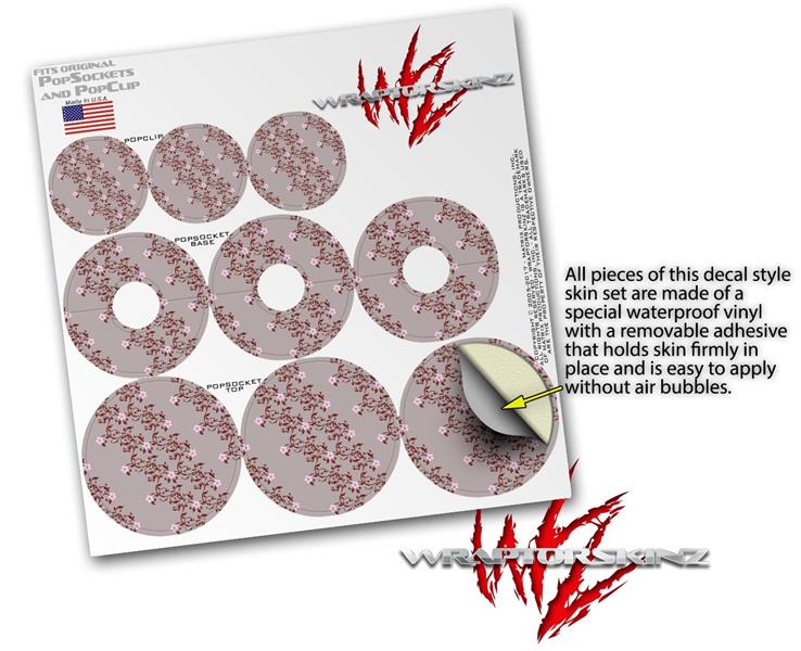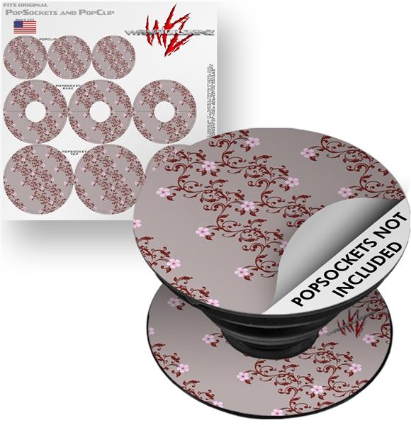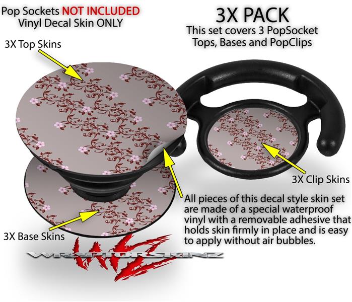 Decal Style Vinyl Skin Wrap 3 Pack for PopSockets Victorian Design Red (POPSOCKET NOT INCLUDED)