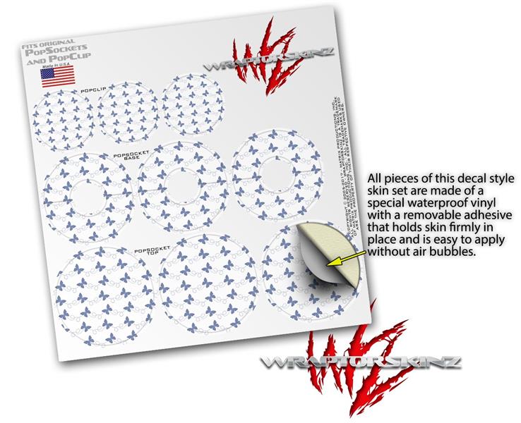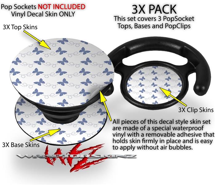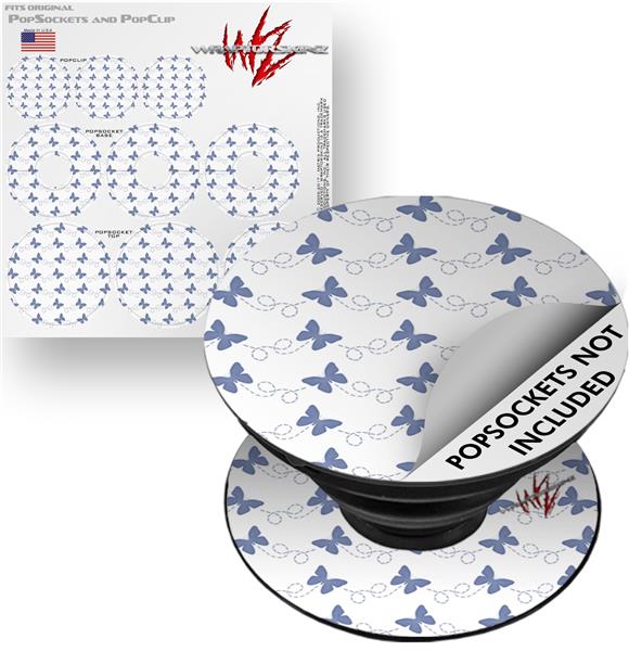 Decal Style Vinyl Skin Wrap 3 Pack for PopSockets Pastel Butterflies Blue on White (POPSOCKET NOT INCLUDED)
