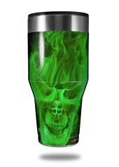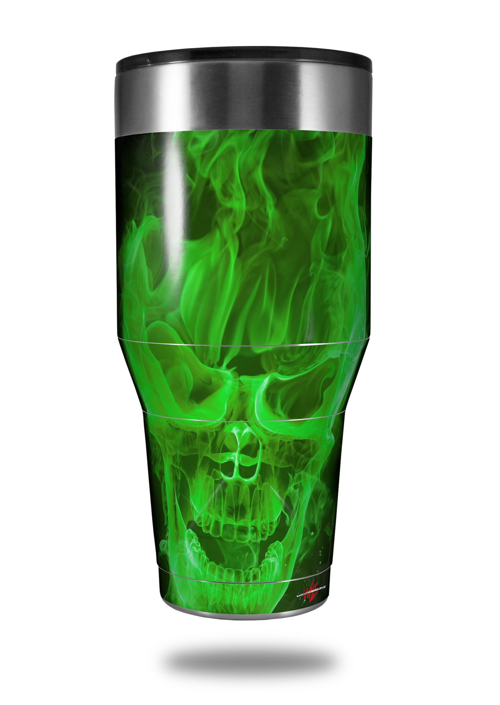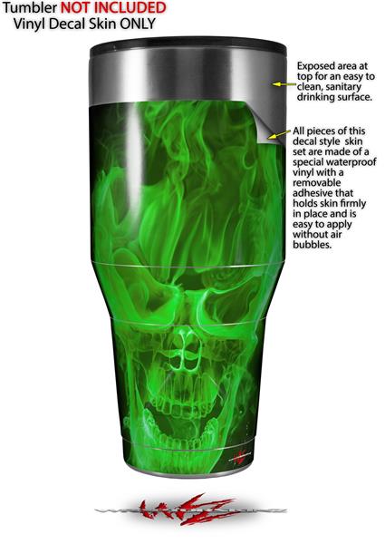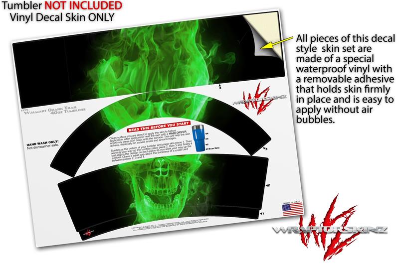 Skin Decal Wrap for Walmart Ozark Trail Tumblers 40oz Flaming Fire Skull Green (TUMBLER NOT INCLUDED)