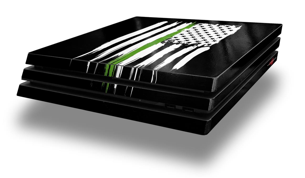 Vinyl Decal Skin Wrap compatible with Sony PlayStation 4 Pro Console Brushed USA American Flag Green Line (PS4 NOT INCLUDED)