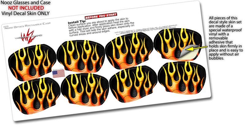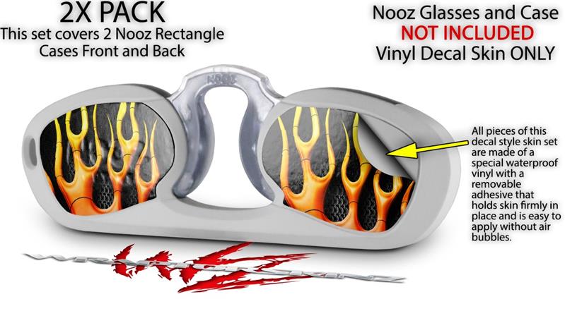 Decal Style Vinyl Skin Wrap 2 Pack for Nooz Glasses Rectangle Case Metal Flames (NOOZ NOT INCLUDED)
