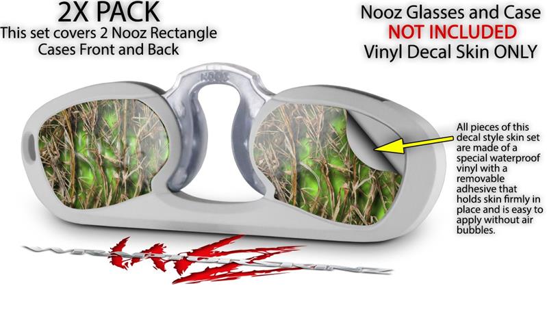 Decal Style Vinyl Skin Wrap 2 Pack for Nooz Glasses Rectangle Case WraptorCamo Grassy Marsh Camo Neon Green (NOOZ NOT INCLUDED)