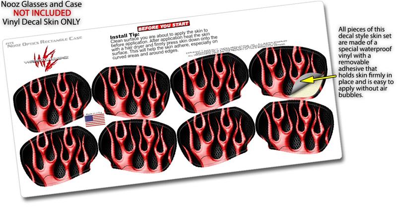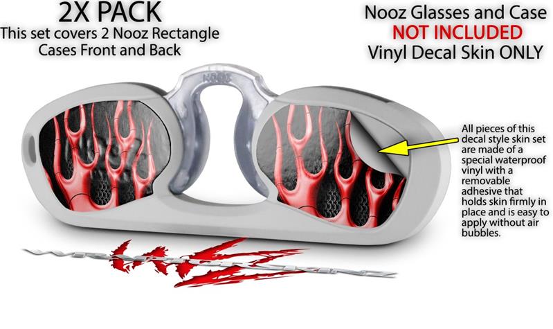 Decal Style Vinyl Skin Wrap 2 Pack for Nooz Glasses Rectangle Case Metal Flames Red (NOOZ NOT INCLUDED)