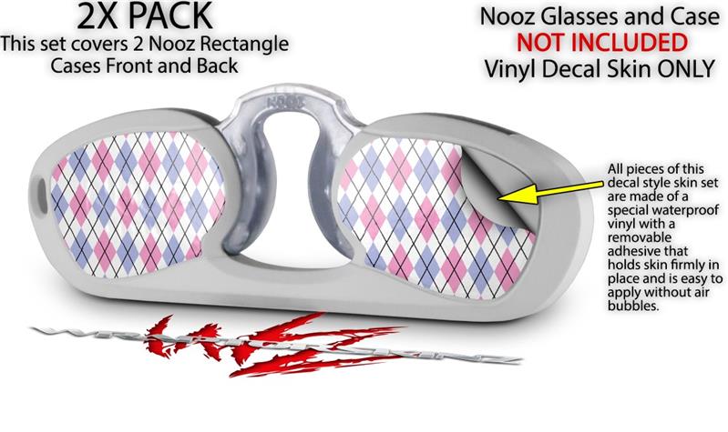 Decal Style Vinyl Skin Wrap 2 Pack for Nooz Glasses Rectangle Case Argyle Pink and Blue (NOOZ NOT INCLUDED)