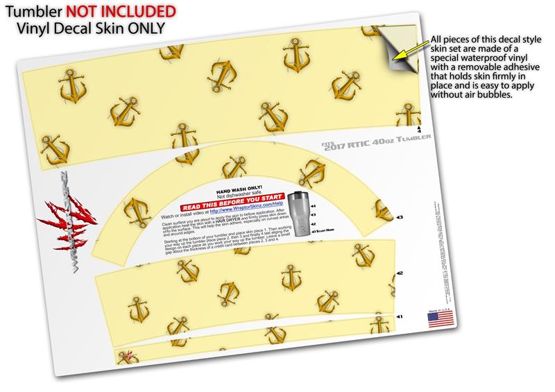 Skin Wrap Decal for 2017 RTIC Tumblers 40oz Anchors Away Yellow Sunshine (TUMBLER NOT INCLUDED)