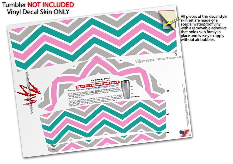 Skin Wrap Decal for 2017 RTIC Tumblers 40oz Zig Zag Teal Pink and Gray (TUMBLER NOT INCLUDED)