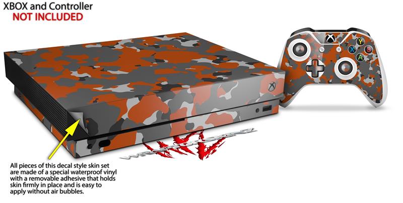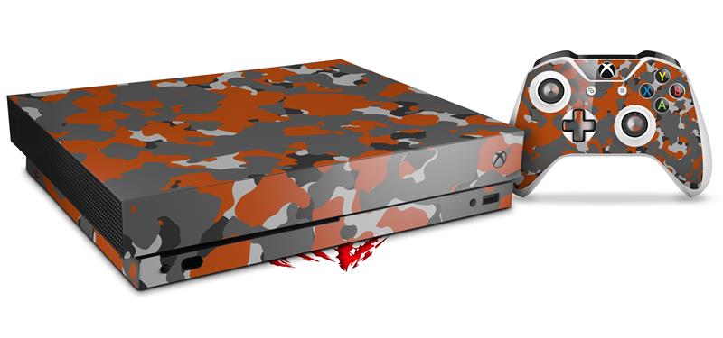 Skin Wrap compatible with XBOX One X Console and Controller WraptorCamo Old School Camouflage Camo Orange Burnt