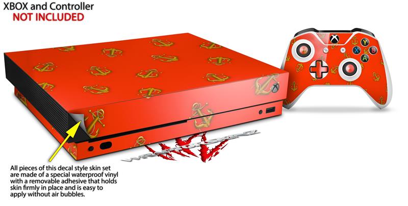 Skin Wrap compatible with XBOX One X Console and Controller Anchors Away Red