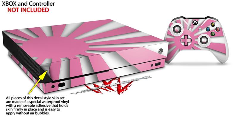 Skin Wrap compatible with XBOX One X Console and Controller Rising Sun Japanese Flag Pink