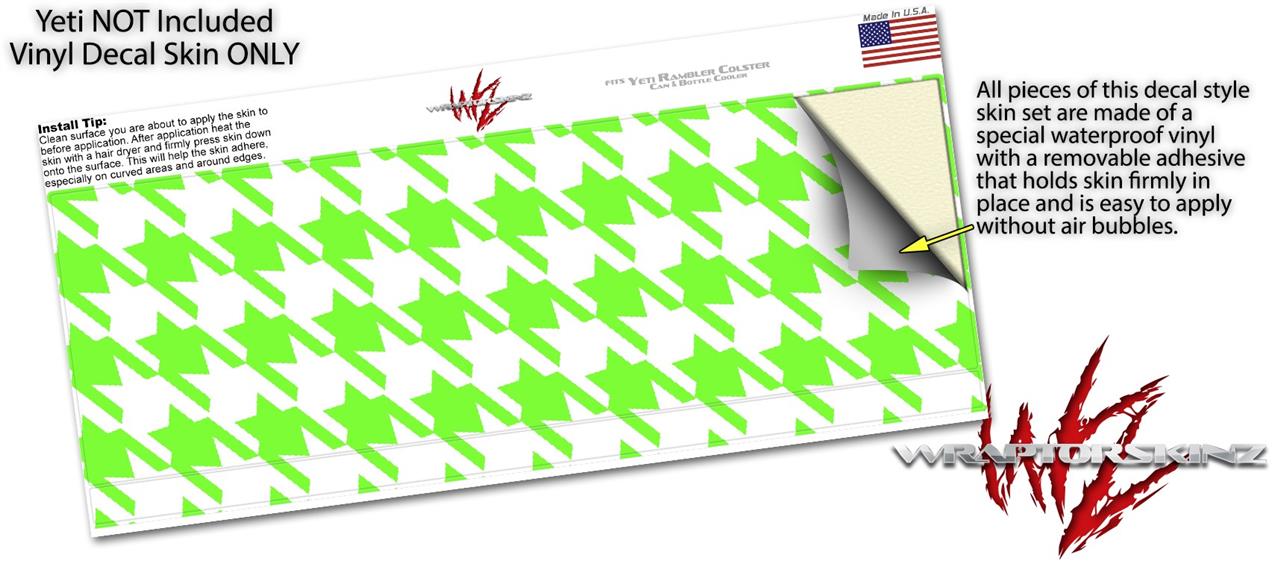 Skin Decal Wrap for Yeti Colster, Ozark Trail and RTIC Can Coolers - Houndstooth Neon Lime Green (COOLER NOT INCLUDED)