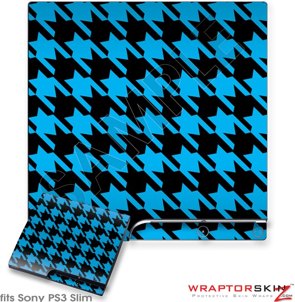 Sony PS3 Slim Skin Houndstooth Blue Neon on Black