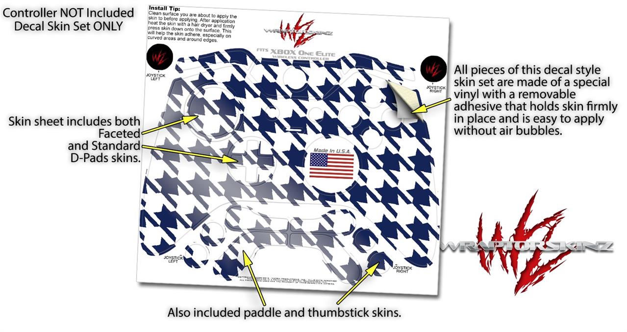 Houndstooth Navy Blue - Decal Style Skin fits Microsoft XBOX One ELITE Wireless Controller (CONTROLLER NOT INCLUDED)