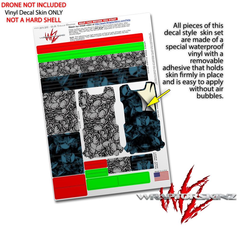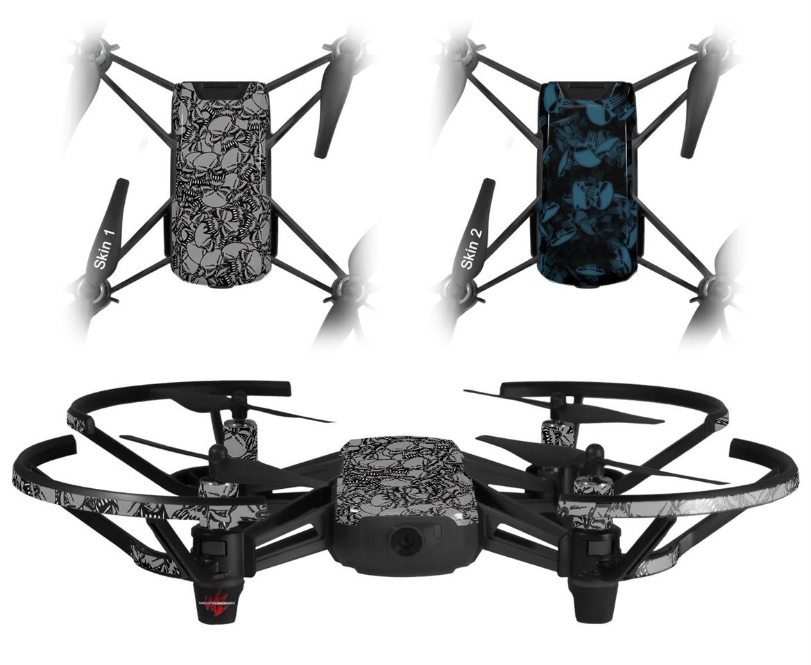 Skin Decal Wrap 2 Pack for DJI Ryze Tello Drone Scattered Skulls Gray DRONE NOT INCLUDED
